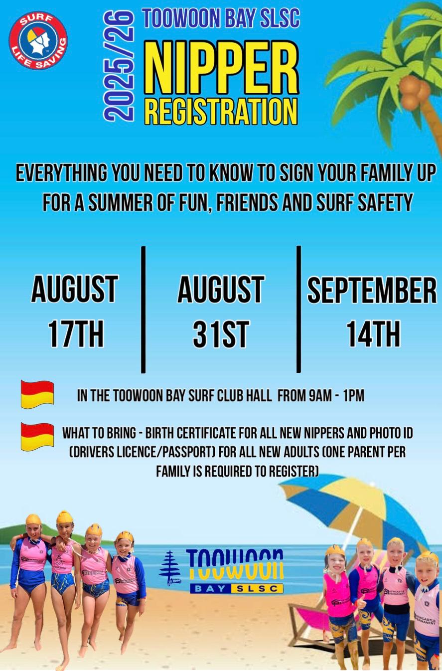 We are looking at starting Nippers on Sunday 12th October 2025. Our Age Managers and Water Safety Personnel are keen and ready to get the 2025/2026 season going.